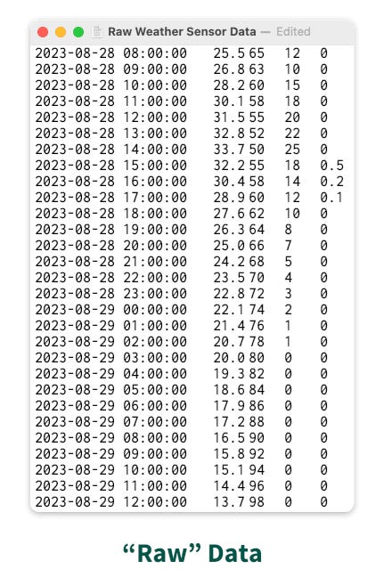 Information emerges when data are structured and contextualized: trends over time, threshold alerts, annotated records. Information is the assemblance of data to create meaningful output.